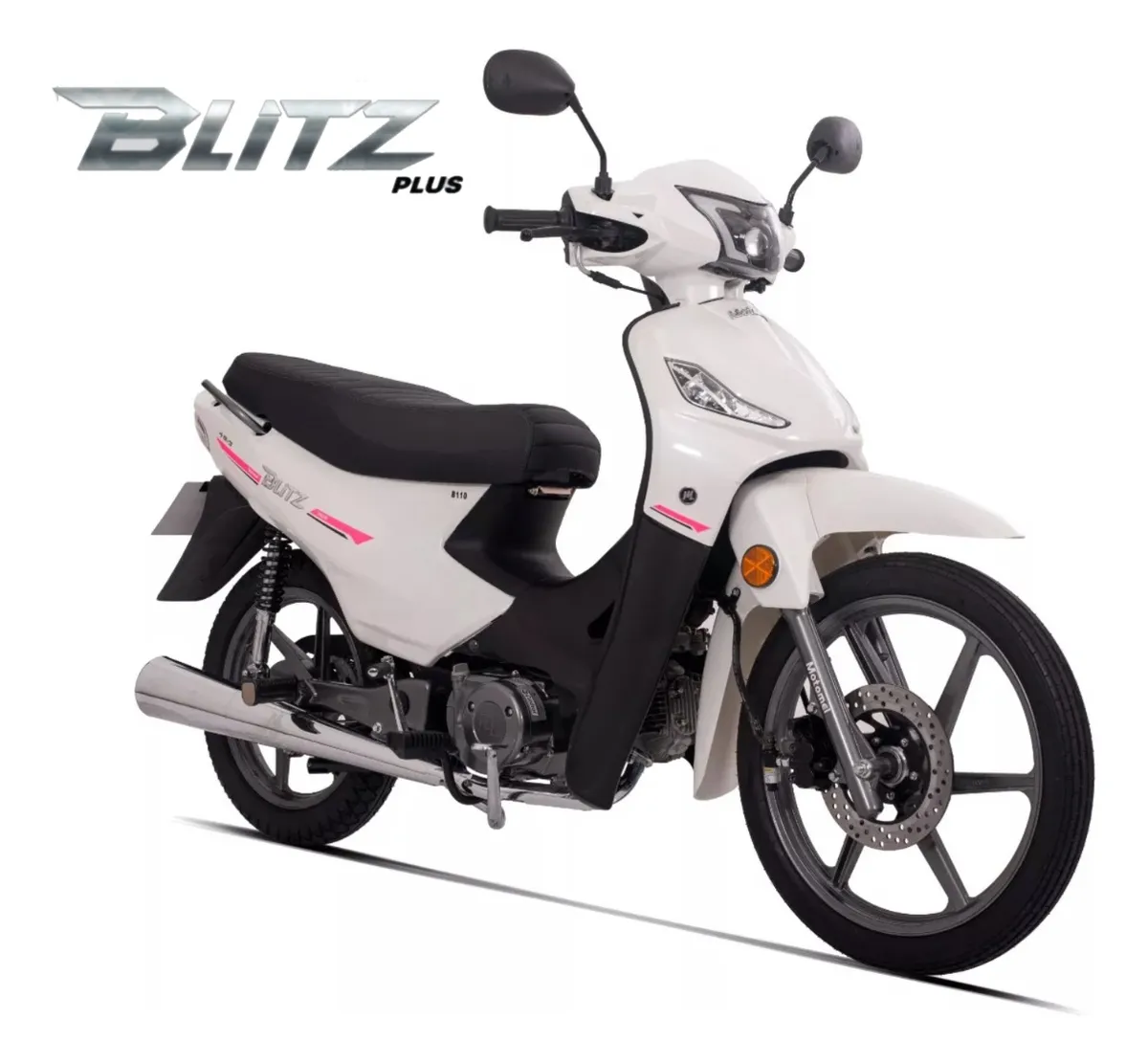BLITZ PLUS Tu vida sobre ruedas y mejor aún si es arriba de la Blitz Plus. Su impresionante aspecto renovado acapara toda la atención. Además, incorpora detalles que te facilitan la vida. La nueva iluminación LED con DRL se enciende de forma automática, solo tenés que girar la llave. También incorpora cargador USB para que siempre tengas el celular cargado, y luces de giro en la pechera frontal para una mayor visibilidad. Con batería ecológica de gel, libre de mantenimiento. CARACTERÍSTICAS • MOTOR MONOCILÍNDRICO 4T • CILINDRADA 110 CM3 • POTENCIA 7 HP A 8000 RPM • EMBRAGUE AUTOMÁTICO • CAJA 4 VELOCIDADES • REFRIGERACIÓN POR AIRE • ARRANQUE ELÉCTRICO Y POR PATADA • DIMENSIONES LARGO 190CM / ANCHO 66CM / ALTO 106,8CM • PESO VACIO 99 KG • CAPACIDAD DE TANQUE 3,5 LTS • RODADO DELANTERO 2.50 – 17 • RODADO TRASERO 80/100 – 14 • LLANTAS ALEACIÓN • FRENO DELANTERO DISCO • FRENO TRASERO TAMBOR • SUSPENSIÓN DELANTERA HORQUILLA HIDRÁULICA • SUSPENSIÓN TRASERA AMORTIGUADORES HIDRÁULICOS Sistema DRL de Encendido Automático Cargador USB Alarma con arranque a distancia Freno delantero a disco con CBS Luces Full LED ————————————–
